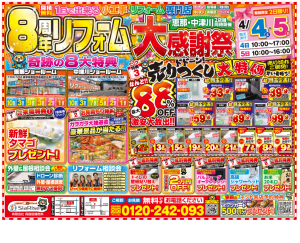 4/4・5 シアライズ8周年リフォーム大感謝祭 シアライズ8周年リフォーム大感謝祭!! 恵那・中津川2店舗同時開催! 4/4(土)10:00~17:00 4/5(日)10:00~16:00 ★是非、ご来場ください★